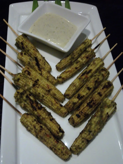 In vegetarian section of the Grill menu, we tried out Cilantro Yogurt Babycorn Skewers which are tender grilled babycorn marinated in spicy scallion yogurt marinade. I'm not a big fan of babycorn but this was crunchy and yummy so we devoured them in record time!